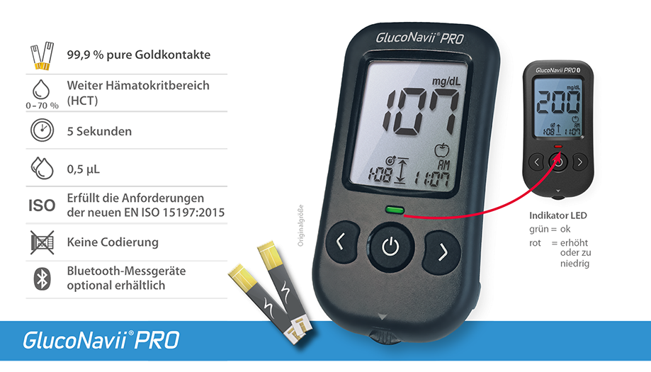 Danke für das Interesse an unserem GlucoNavii® Pro Blutzucker-Messgerät.